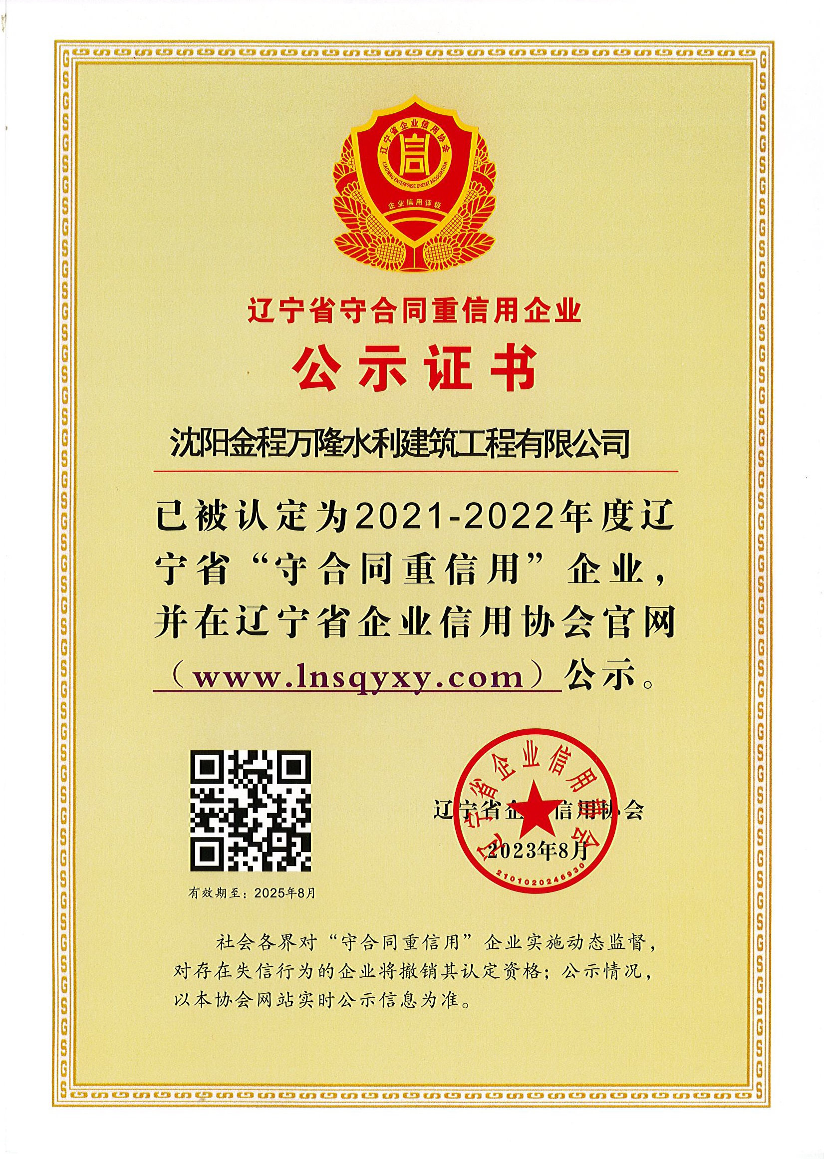 2021-2022年度守合同重信用證書